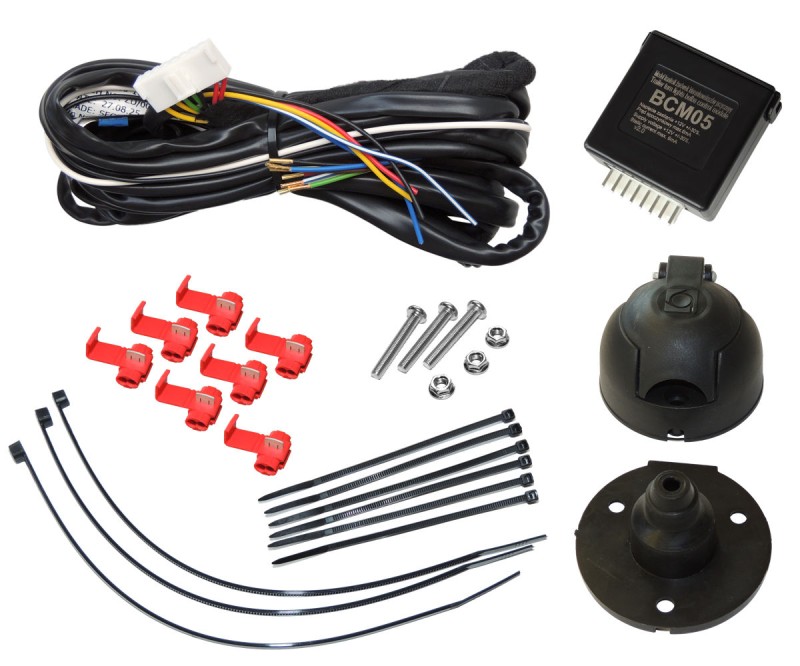 The trailer socket wiring harness with trailer turn light bulb failure detection module BCM05 is a simple solution, dedicated for cars, where the trailer socket can be connected direct to the electrical installation in car. This kit includes 7-pin trailer socket.