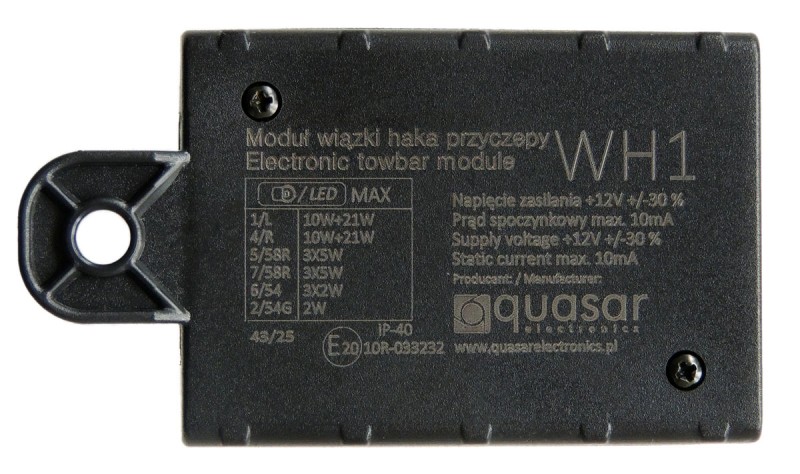 WH1 module is essential product for trailer lighting control. Module "copies" car light signals to socket of the trailer. Module WH1 is for 7-pin trailer socket.
