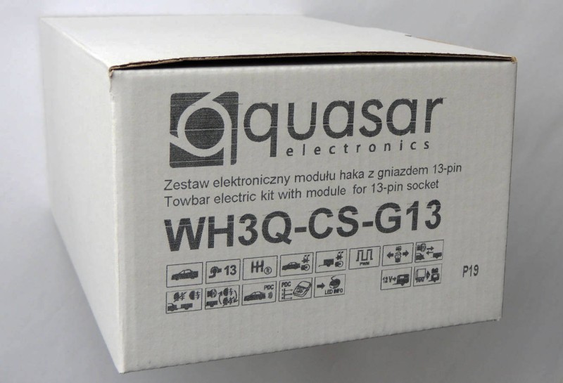 Newest generation of digital module WH3Q-CS in set with full wiring to the 13-pin's socket. Package contains all accesoires (including relay for switching-on the trailer battery charging circuit) for connection of kit to the car's electric system and socket G13 already is connected with main harness which makes an installation faster.